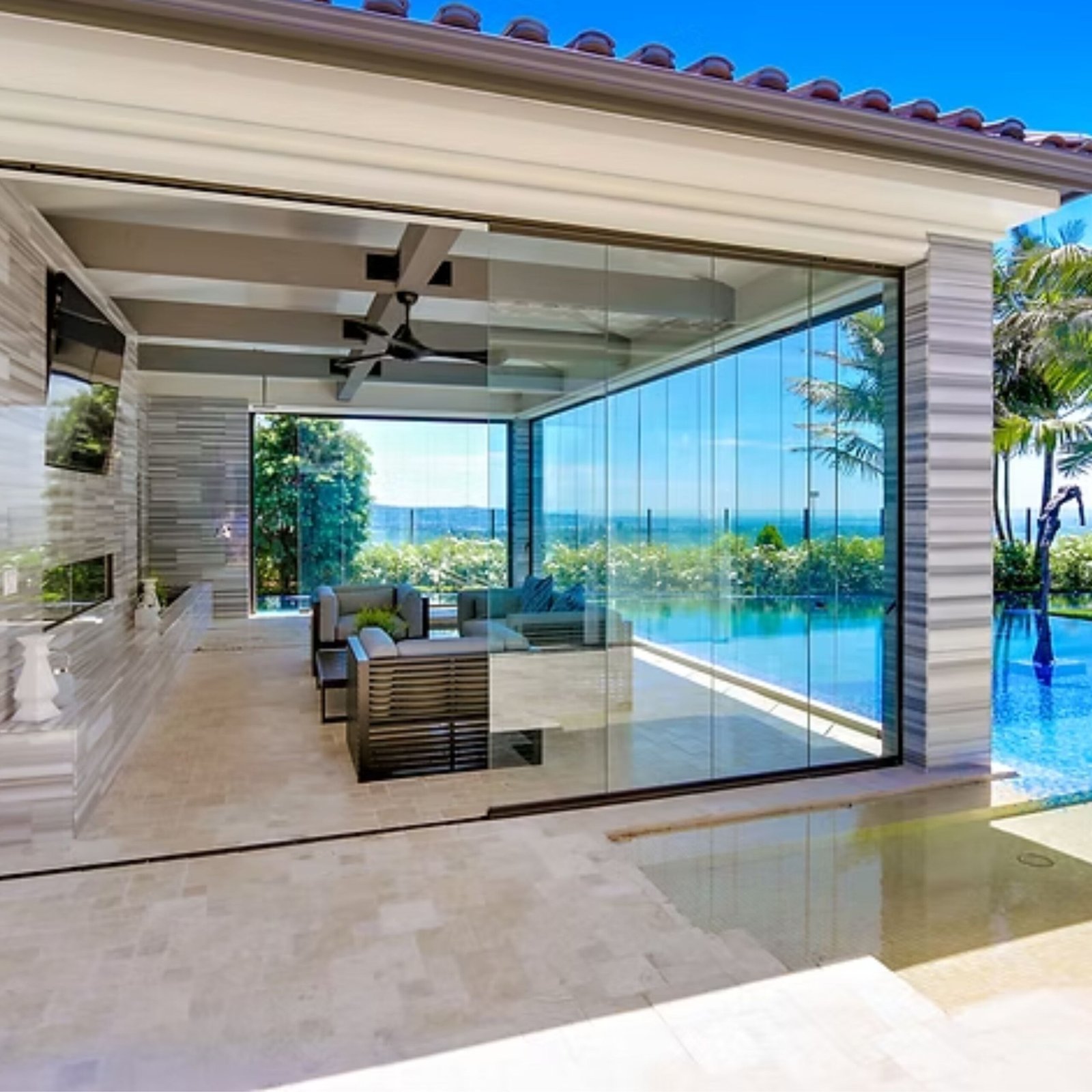 Immerse yourself in the epitome of elegance and transparency with our Frameless Folding Doors. These doors offer unobstructed views and a feeling of boundless space, connecting interior and exterior areas seamlessly.